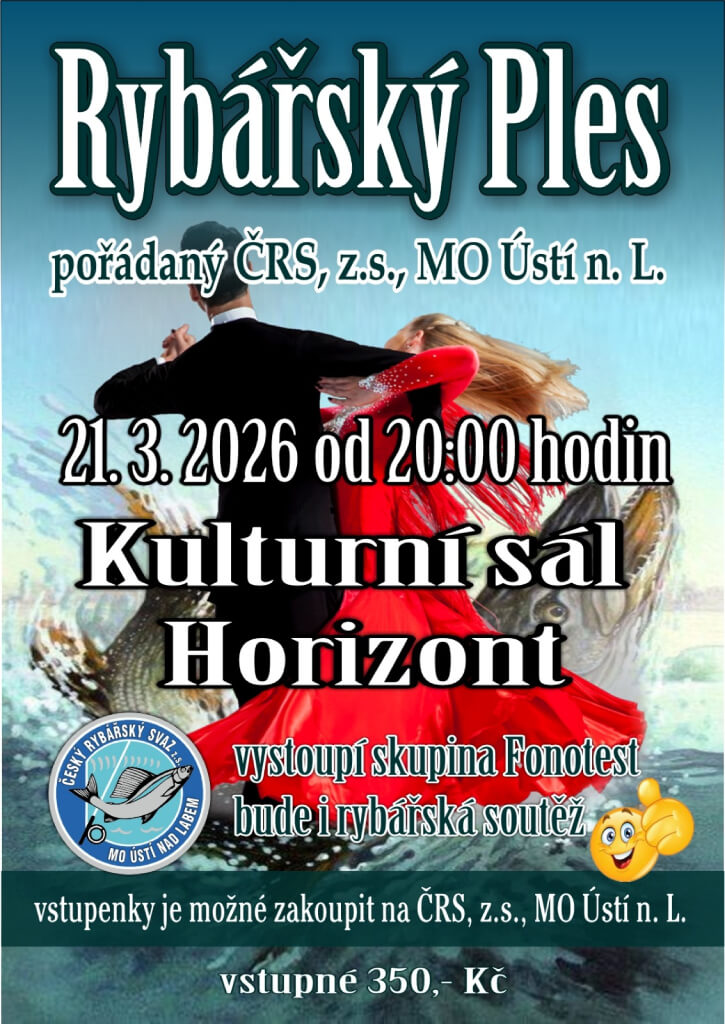 Naše organizace společně se Sportovním rybolovem Chabařovice pořádá Rybářský ples. Vystoupí skupina Fonotest a můžete se těšit i rybářskou soutěž!